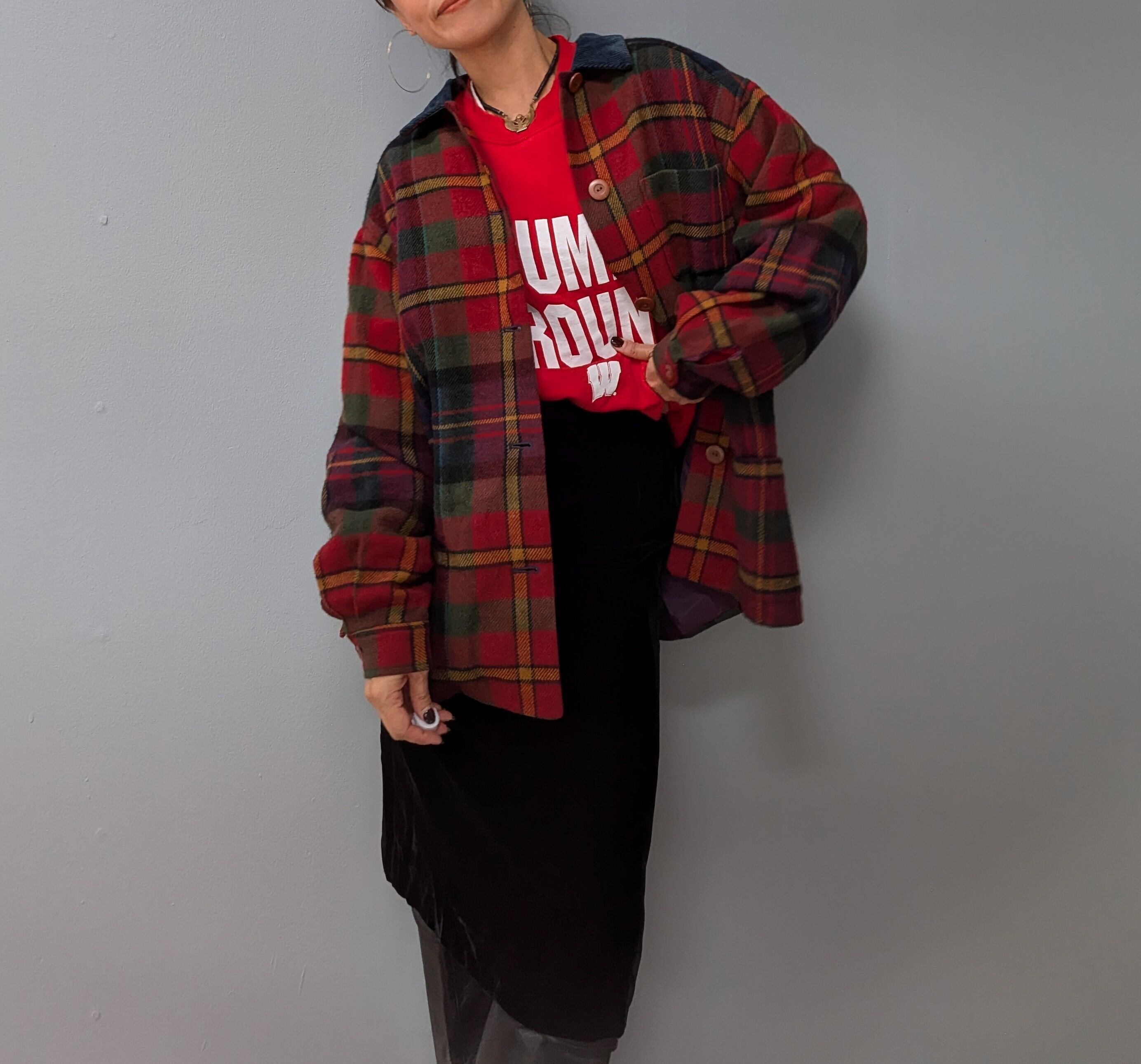 90年代ウールチェックシャツジャケットです。暖かさと軽やかな着心地が魅力で、寒い季節の羽織としても重宝する一着。独特なあたたかみのあるチェック柄がカジュアルでありながら、上品さもあり、さまざまなスタイルにマッチします。