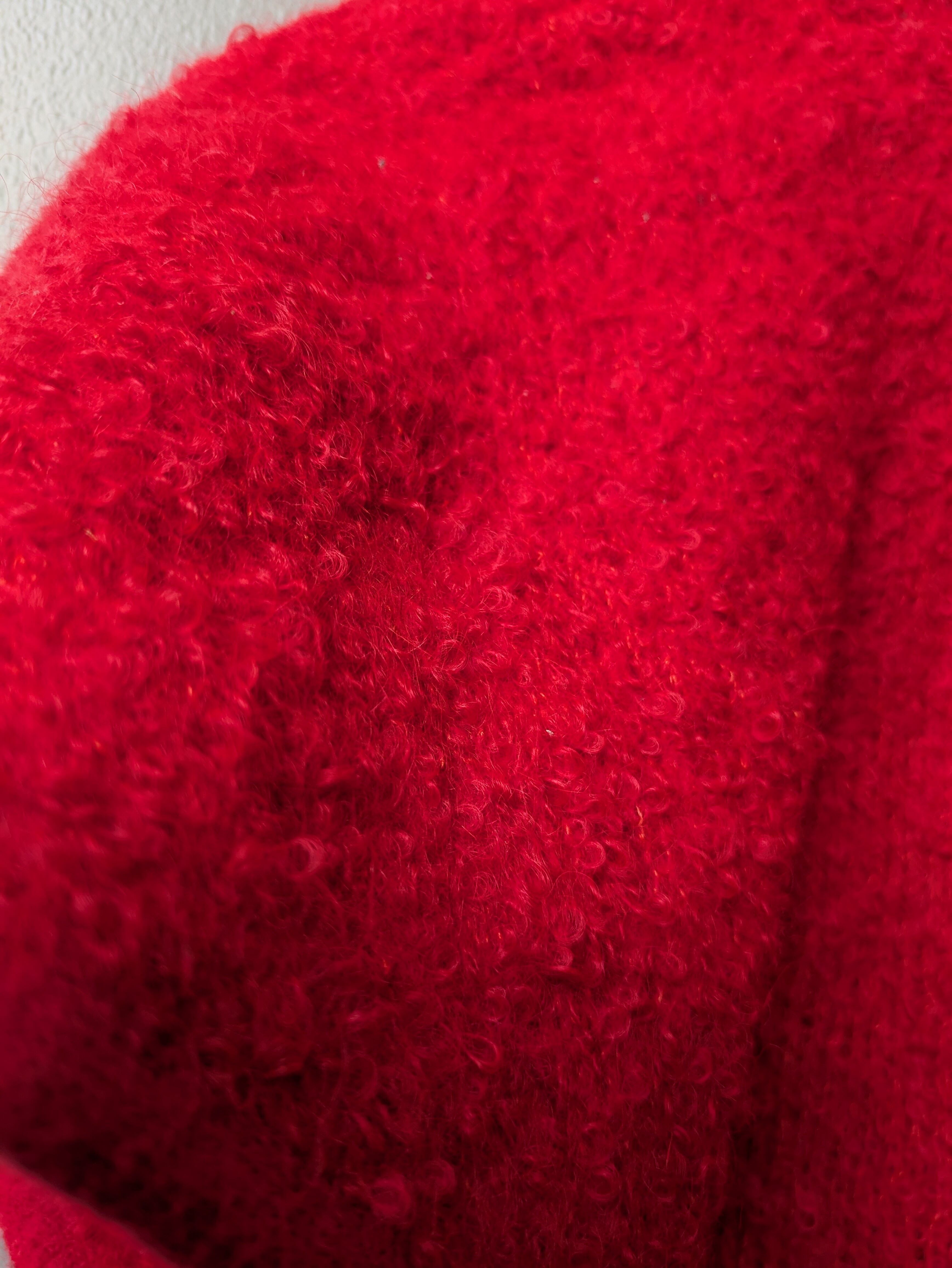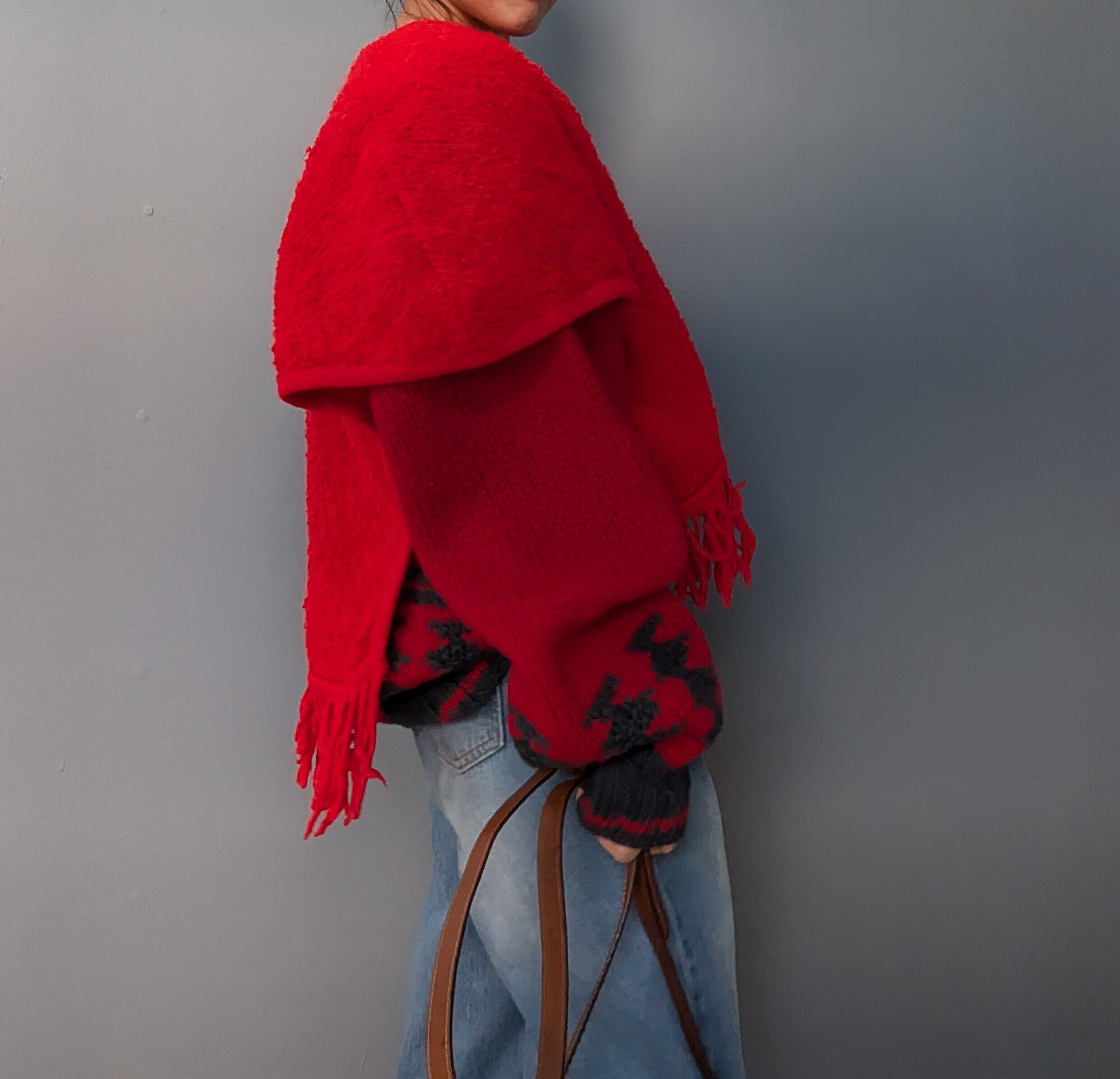 シンプルなデザインとポコポコとした表情がかわいいプードルニットの風合いがかわいいVintage wool100%ニットポンチョカーディガン。
